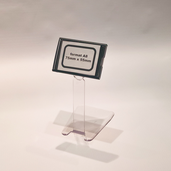 The price tag holder for display freezers is specially designed to be used in showcases with ice or similar places where it is necessary to insert a price tag holder and have it stand stable. The unique shape of the spike allows it to stand firmly inserted in ice or similar loose goods, and stay stable. It is particularly interesting as a solution for displaying prices in fish markets. The height of the spike is 150mm.